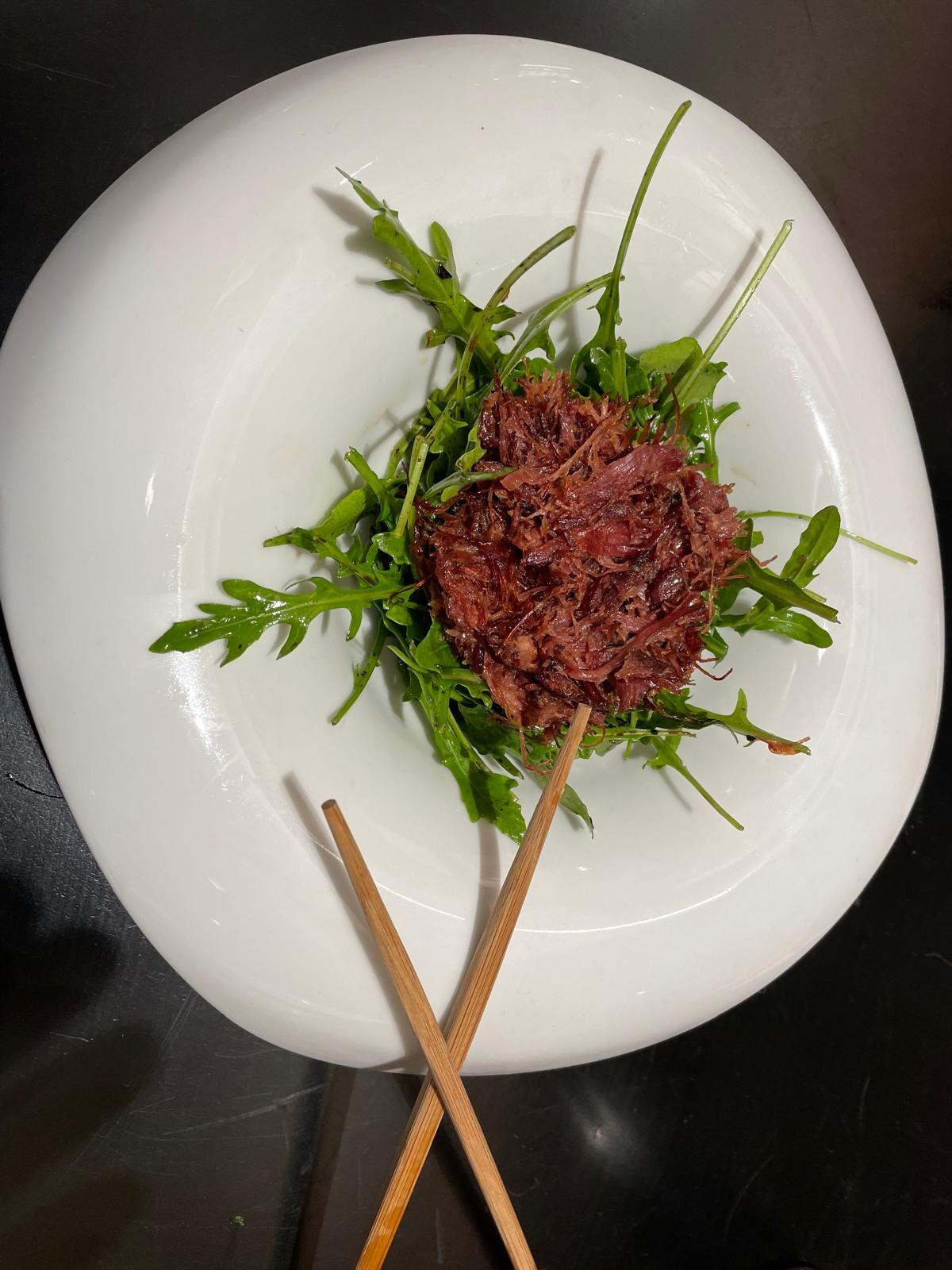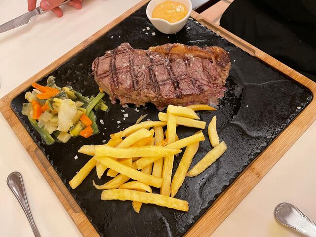 Durante los fines de semana, se transforma en marisquería, con pescados y mariscos frescos, y ofrece una cuidada carta de vinos y cócteles.